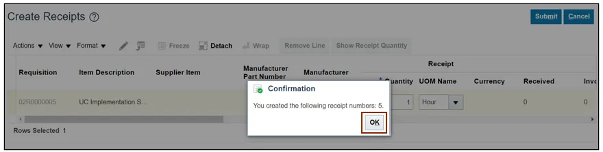 Step 7. The Confirmation pop-up appears with the Receipt Number. Click the OK button.