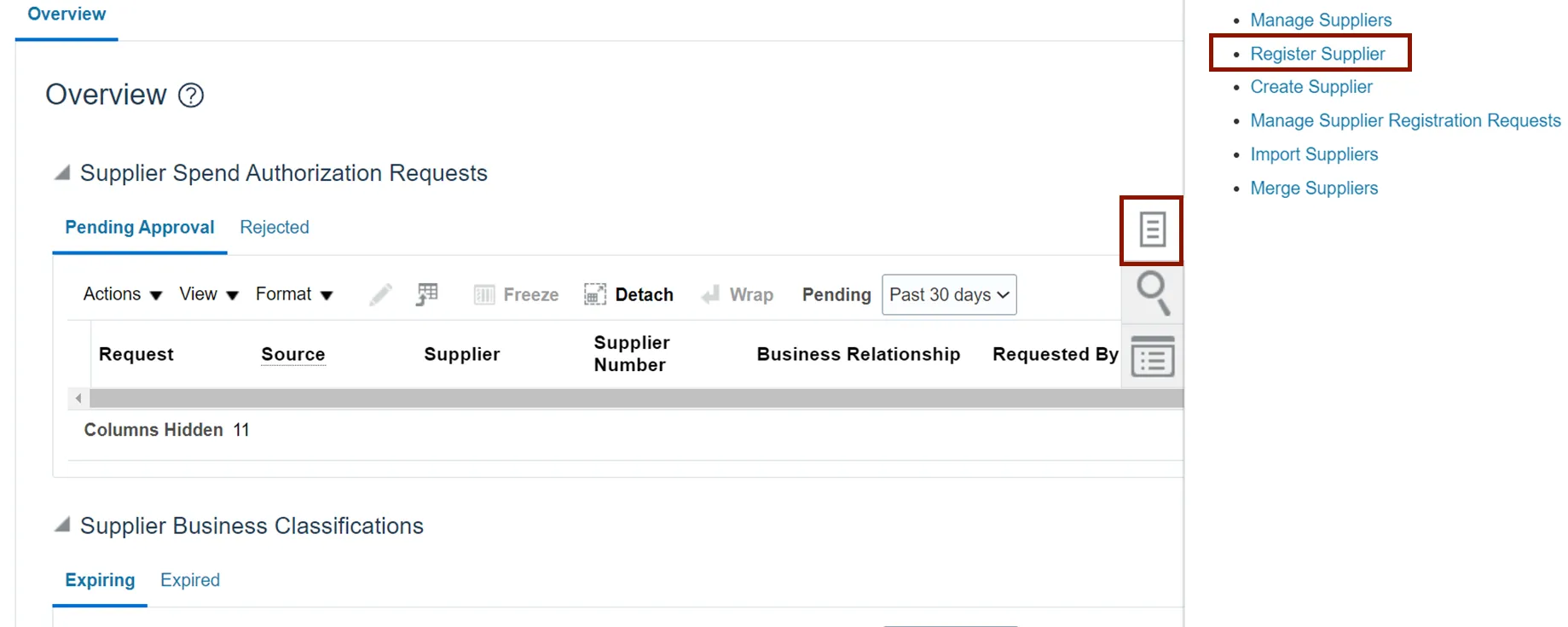Register Suppliers using the steps above to register the supplier registration request and update the supplier data elements.