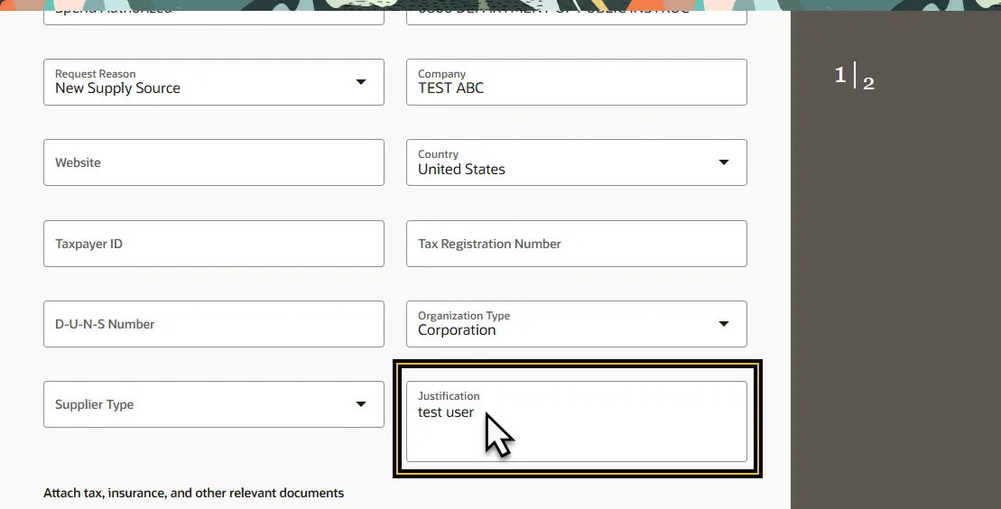 Step 7. In the Justification field, enter the justification for the new supplier registration.