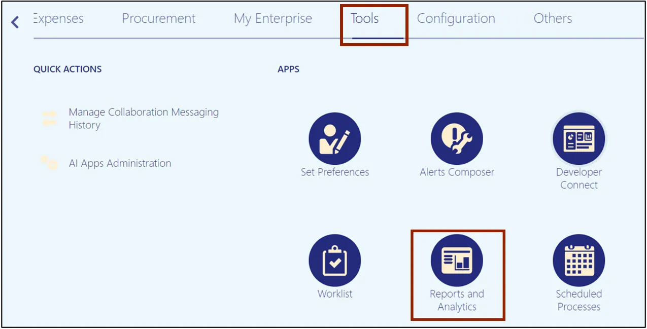 Step 2. On the Home page, click the Tools tab and select the Reports and Analytics app.