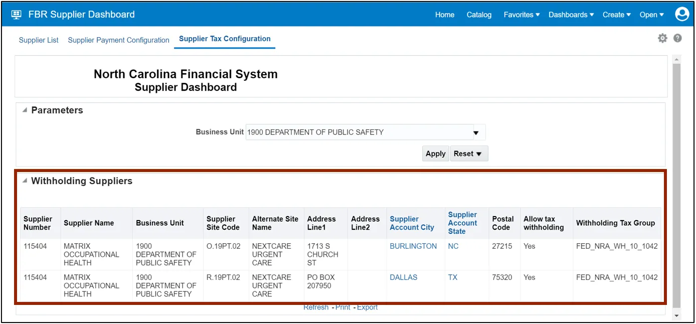 Step 15. View the Withholding Suppliers report for the filtered Agency.