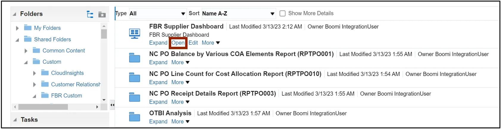 Step 9. Under FBR Supplier Dashboard, click Open.