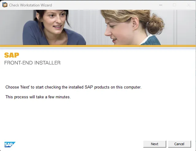 Step 4. A Check Workstation Wizard pop-up will display. It states Choose ‘Next’ to start checking the installed SAP products on this computer. This process will take a few minutes. Click Next.