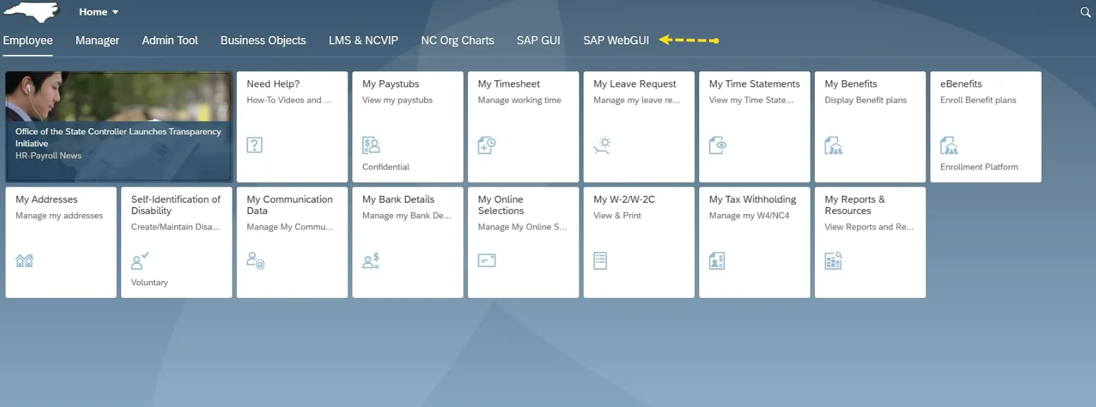 To access WebGUI, simply log into the Integrated HR-Payroll System (using VPN if you are remote) and follow the instructions below.