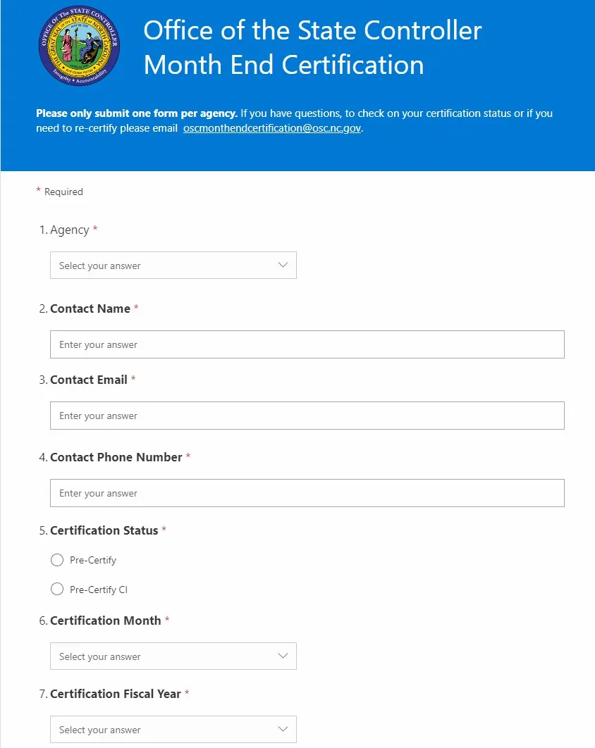 Fill out the information on the OSC Month End Certification Microsoft Form and click submit.