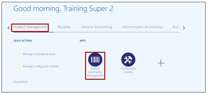 Step 2. On the Home page, under the Product Management tab, click the Product Information Management app.