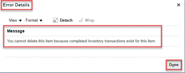 Step 12. The Error Details Window will appear with an information message regarding the deletion error(s). Click Done.
