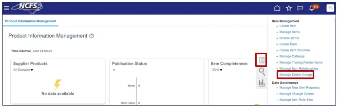 Step 3. Click the Tasks icon and select Manage Delete Groups.