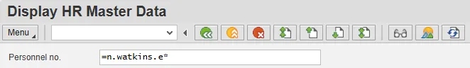 Example 3: Type =n.watkins.e* in the Personnel no. field and click Enter.