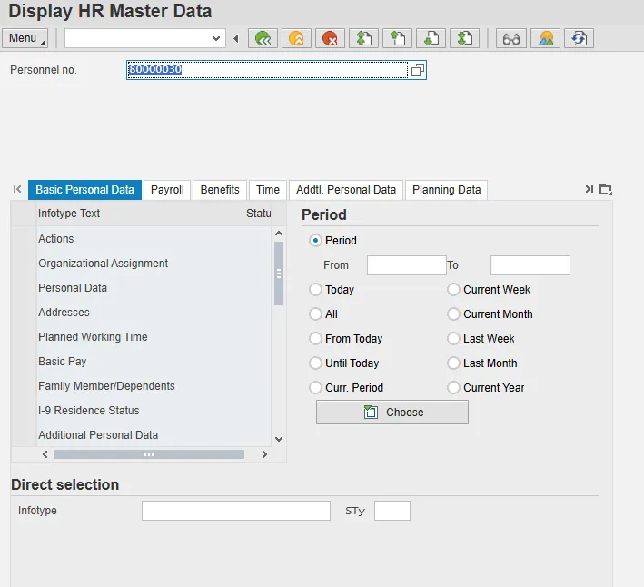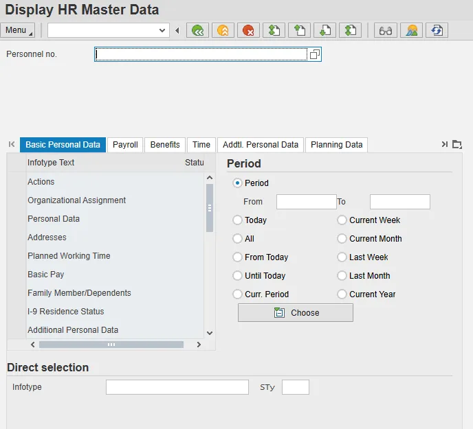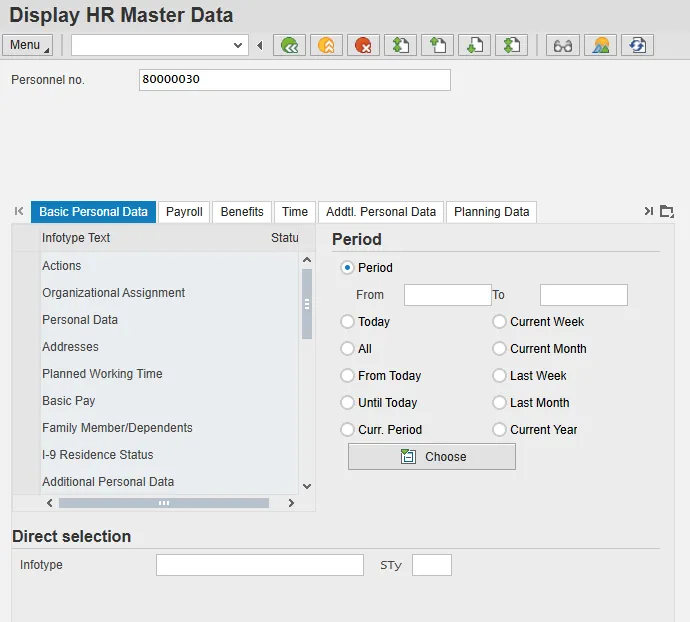 Step 1: Type the employee’s Personnel number in the Personnel no. field and click Enter.