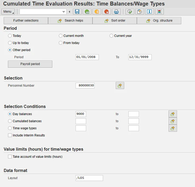 Step 1: Type transaction PT_BAL00 in the Command field and click the Enter.  You can also add it to your Favorites.