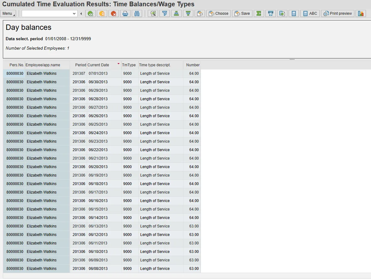 Users with the “Display Time” role can use transaction PT_BAL00.  A variant for “Length of Service” has been created where only the employee personnel number needs to be entered. There are 6 steps to complete this process.