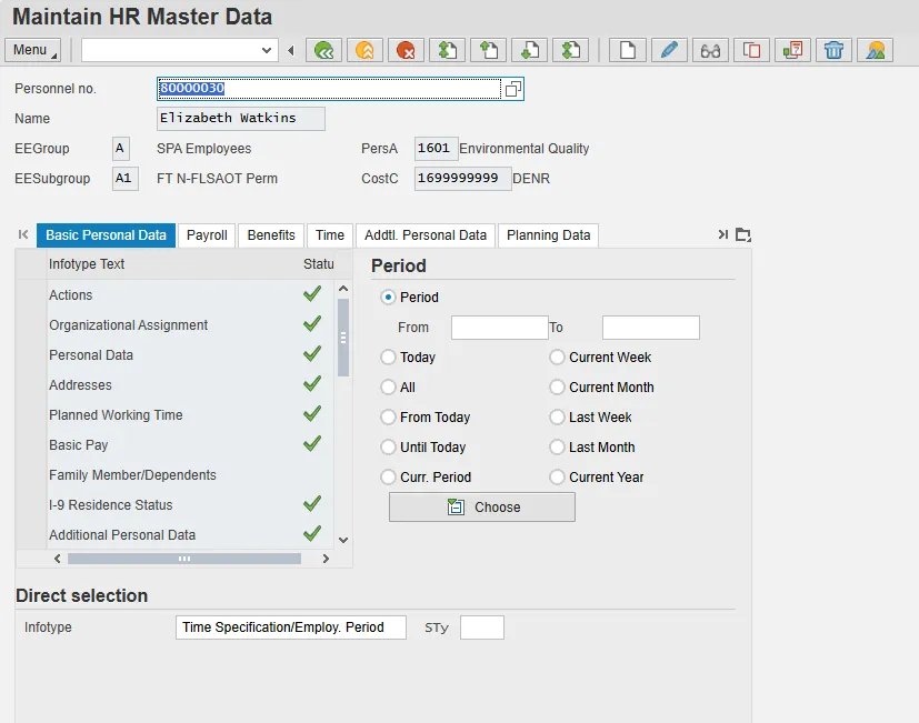 Enter value in Personnel No. Example: 80000030 |