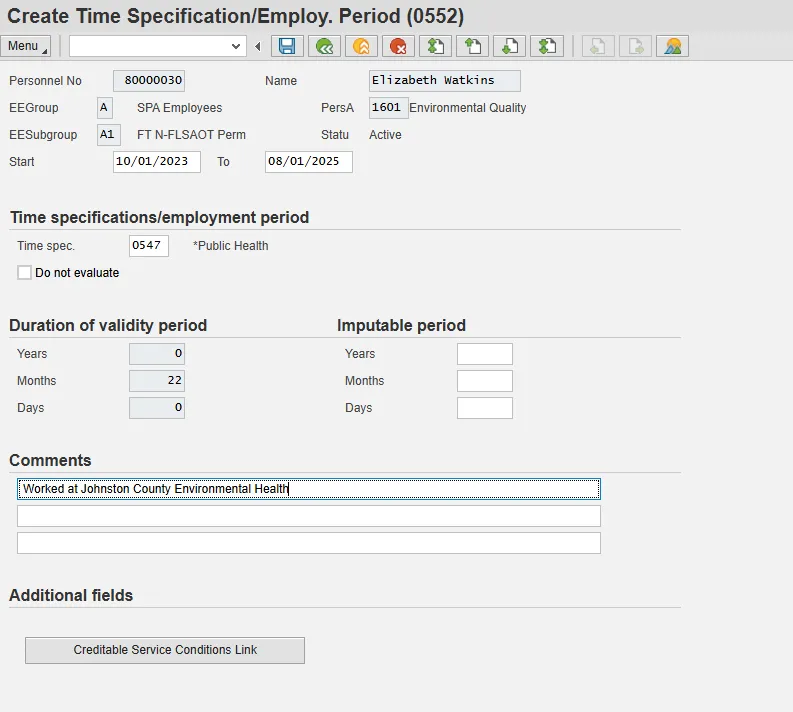 | Additional fields | Creditable Service Conditions Link | View OSHR List of Creditable Service Conditions List with additional information. |