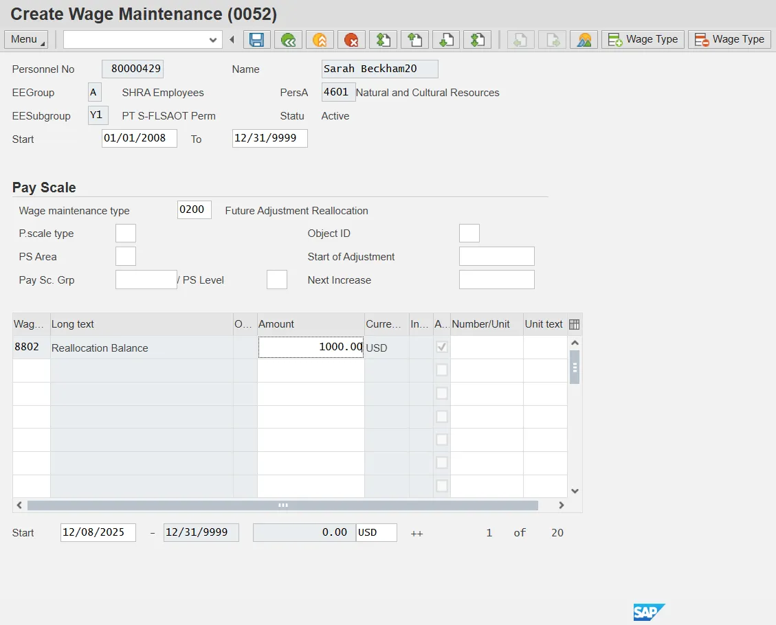 There is a need to create and/or maintain reserve balances on Infotype 0052 -Wage Maintenance. This is used for Reallocation and Range Revision actions with balances.