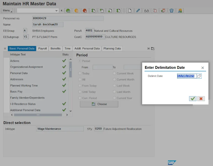 Note: If the Delimit pop-up window did not display, it is because you did not start from the Easy Access screen. In this case, you must enter the delimit date on the second delimit screen.