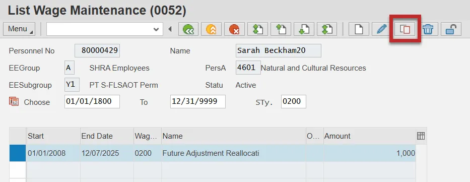Step 9: While you are on the List Wage Maintenance screen, select the line item with the $1,000 delimited amount.
