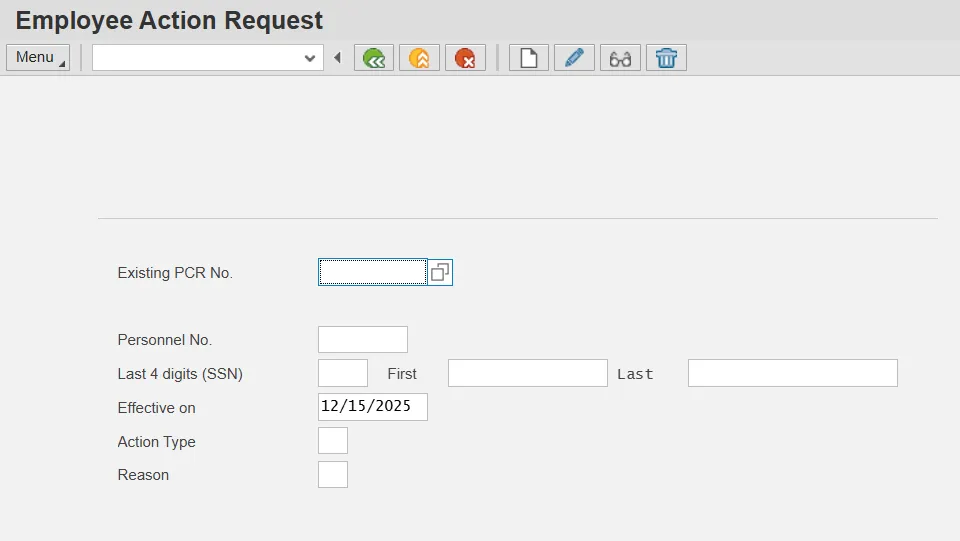Leave the Existing PCR No. field blank if you are creating a new PCR.