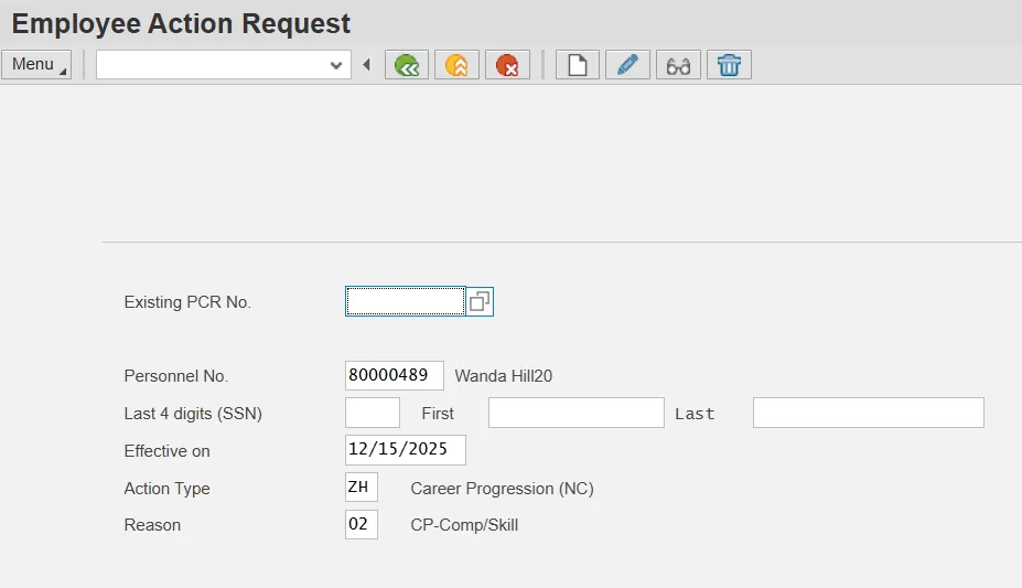 The effective date is the date the Career Progression will go into effect. This date must match the effective date on the PCR.