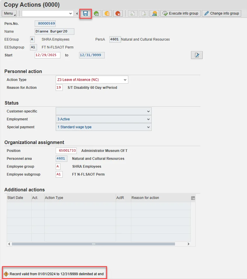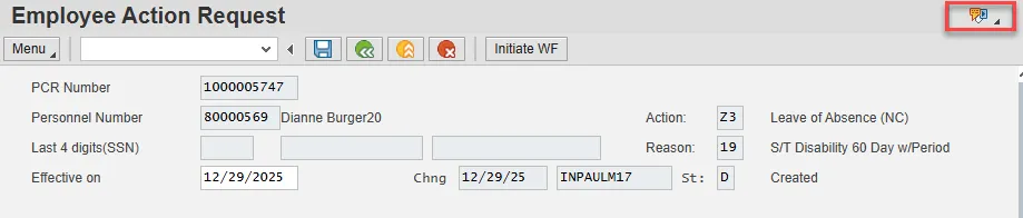 The Leave of Absence Action Short-Term Disability is complete, but we recommend reviewing via PA20 all infotypes that have been processed.