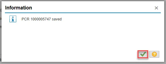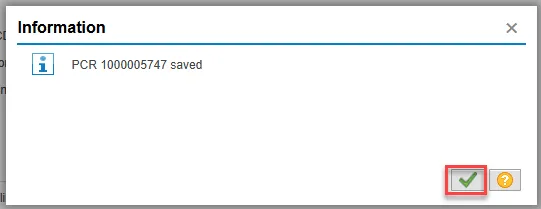 Step 9. The action request will be assigned a PCR number. Choose the green check button from the pop-up.