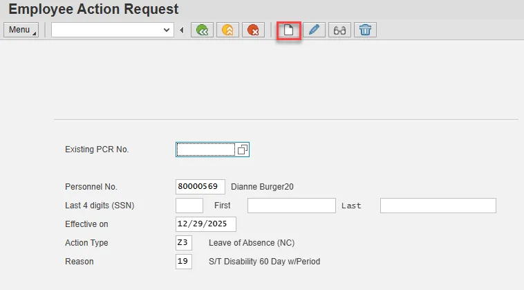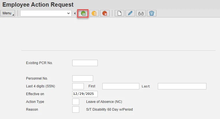 Step 2. On the Employee Action Request screen, complete the Personnel No. field and select Enter on the keyboard.