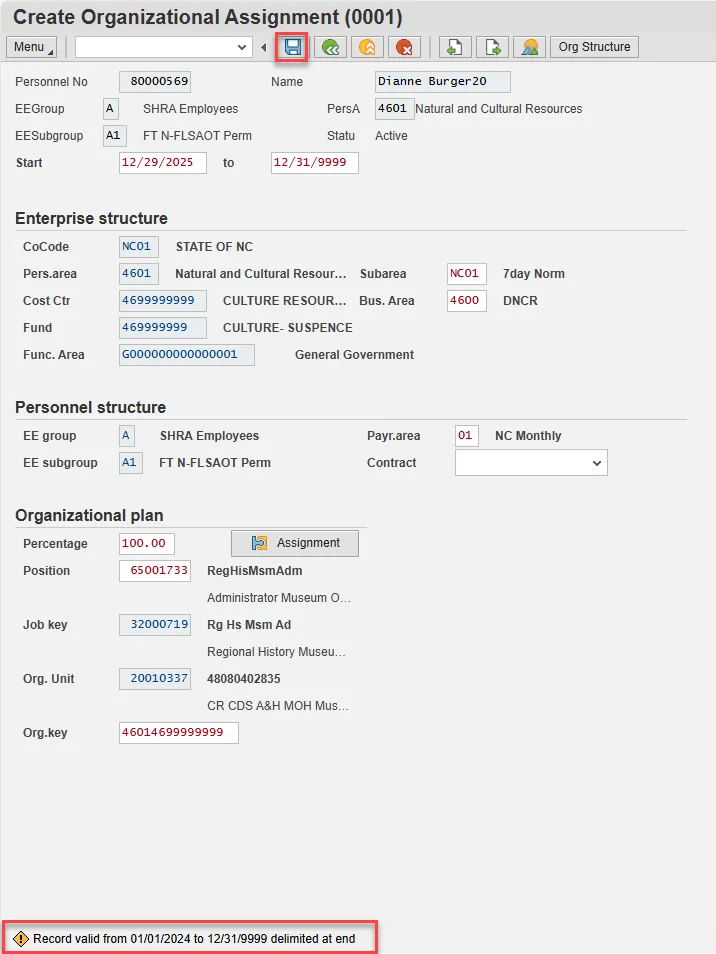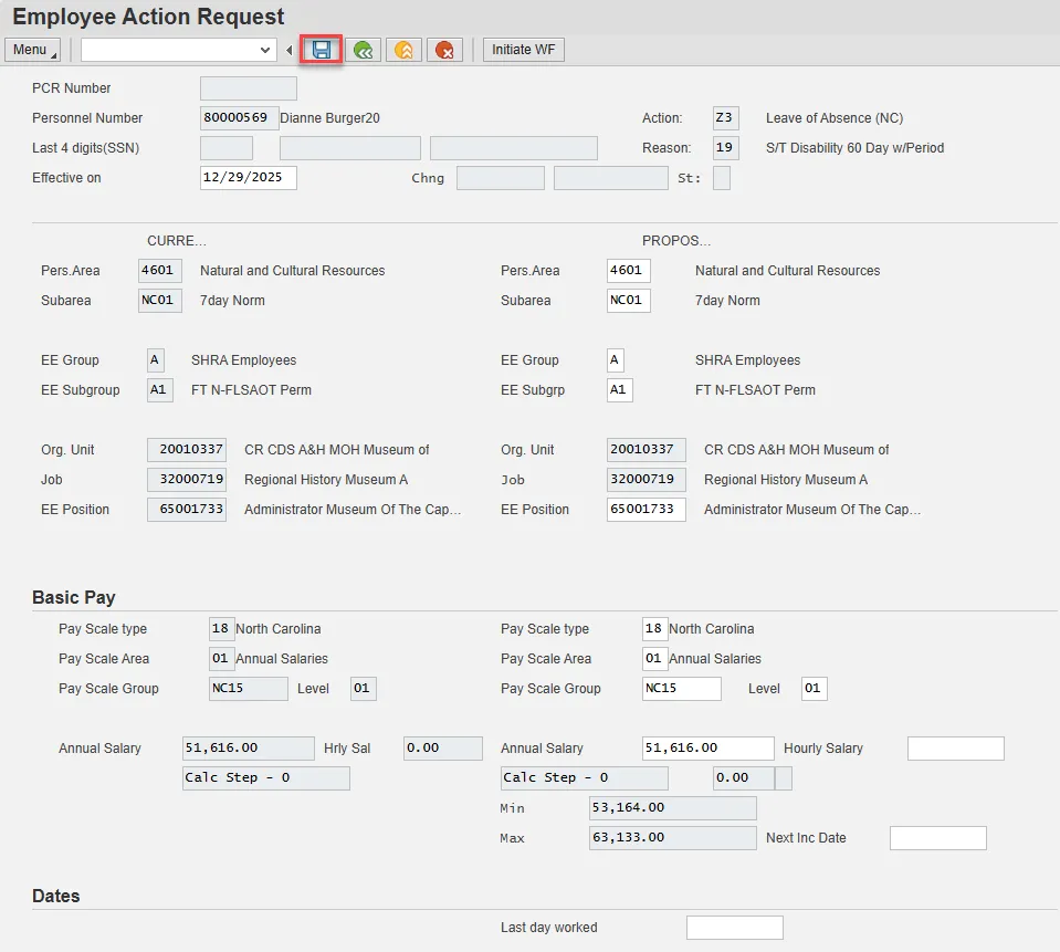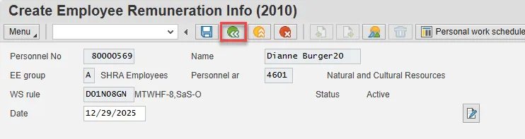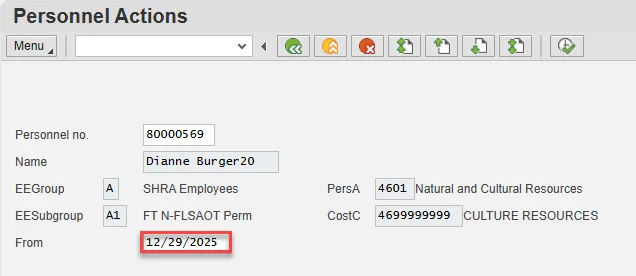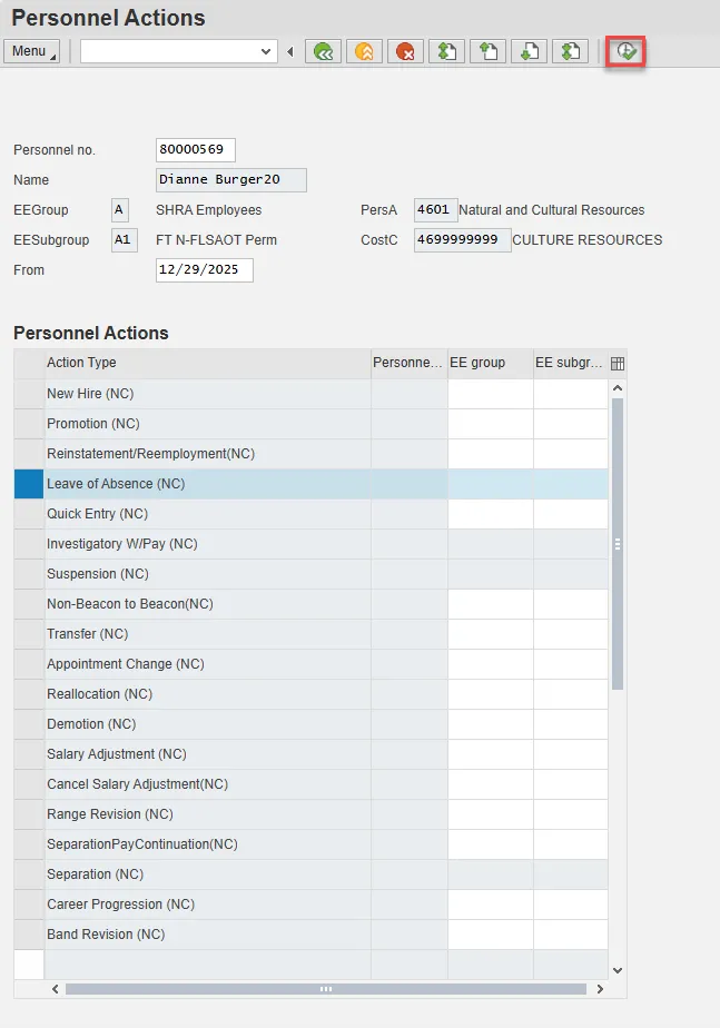 Step 21. Back at the Personnel Actions screen, select the Green Arrow Back button.