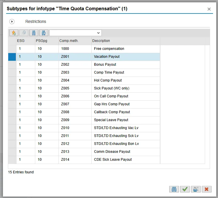 Step 17. On the Subtypes for infotypes “Absences” pop-up, choose the type of leave as applicable.