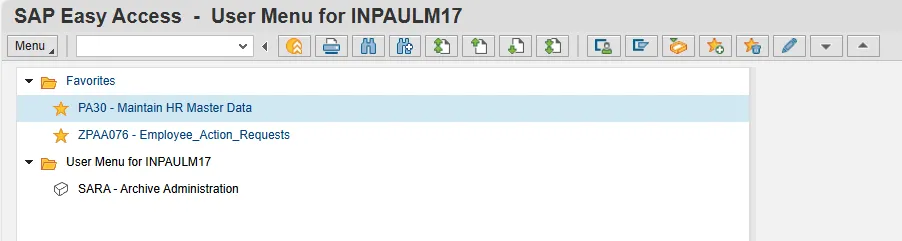 Step 1. From the SAP Easy Access page, select transaction code PA30.