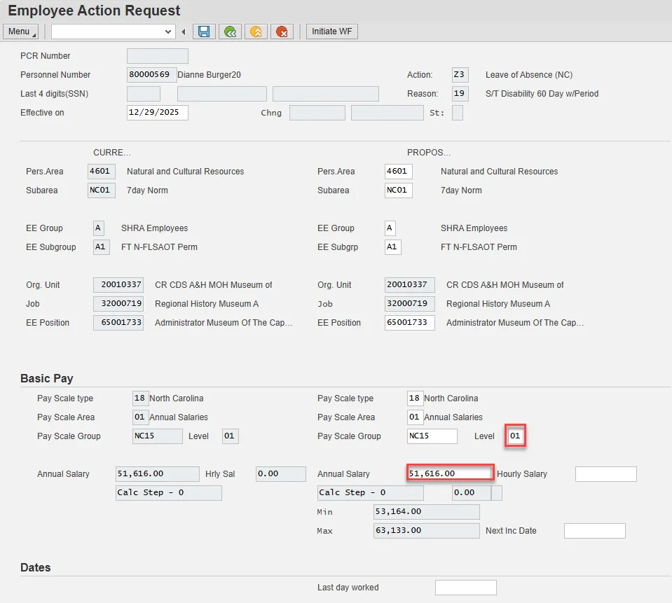 Select the Initiate Workflow button to send the Reinstatement Action through the approval process. No changes can be made after the PCR has been submitted for approval, unless the PCR is rejected at any stage and sent back to you (the initiator/requestor).