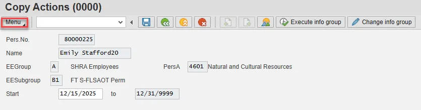 Step 17. Back at the Personnel Actions screen, select the Green Arrow Back button.