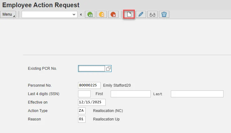 Step 2. On the Employee Action Request screen, update the Personnel No. field and select Enter on the keyboard.