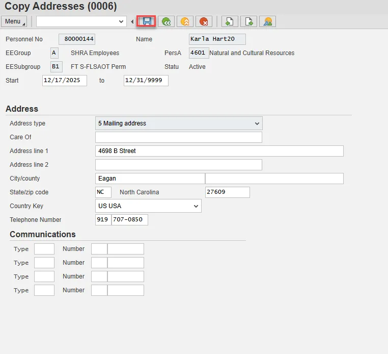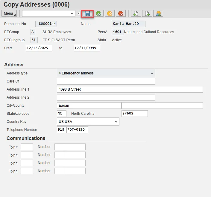 Step 25. Update Copy Addresses (0006) with Emergency contact information.