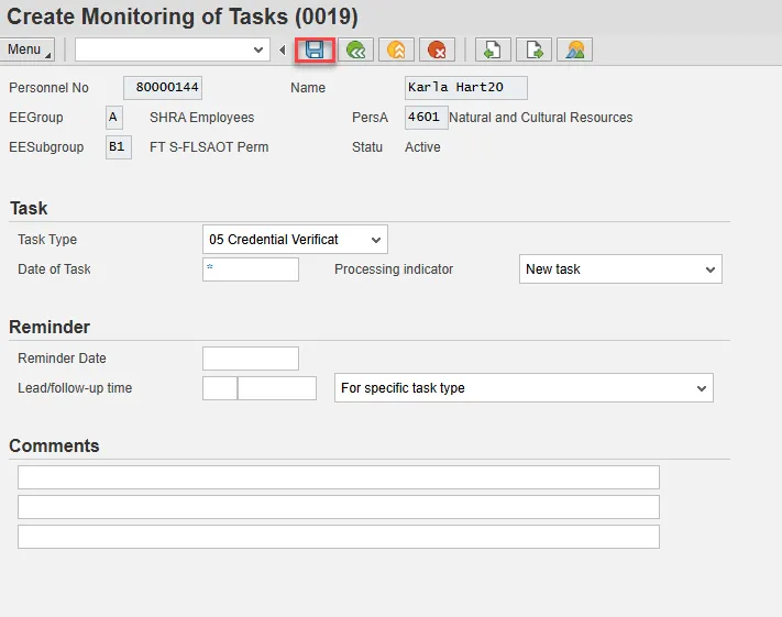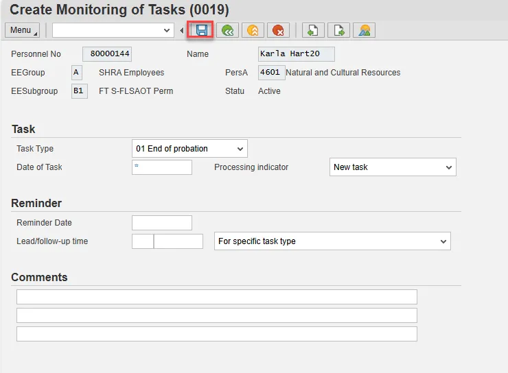 Insert any notes or comments pertaining to the task. To view these task reminders, you can run the BOBJ Report – B0099 – Employee Deadline Dates. Managers can view for their employees via MSS.