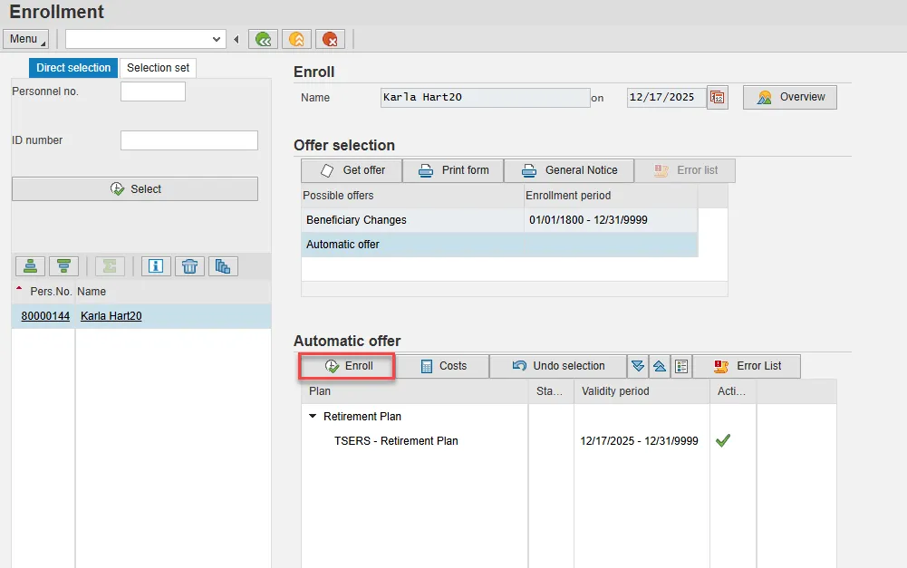 Note: This is the Retirement Enrollment for the employee.