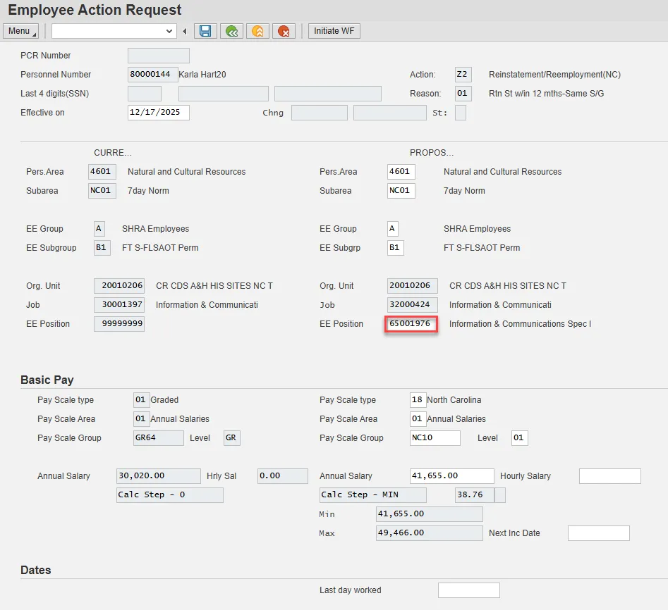 - Prior to initiating any workflow, ensure the data being used is valid and appropriate. For example, if working with a Reinstatement/Reemployment action, ensure the individual is currently listed as Separated.
