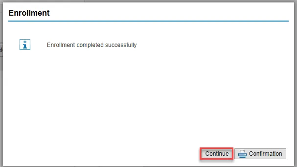 Step 36. On the Enrollment pop-up, select Continue in the bottom right.