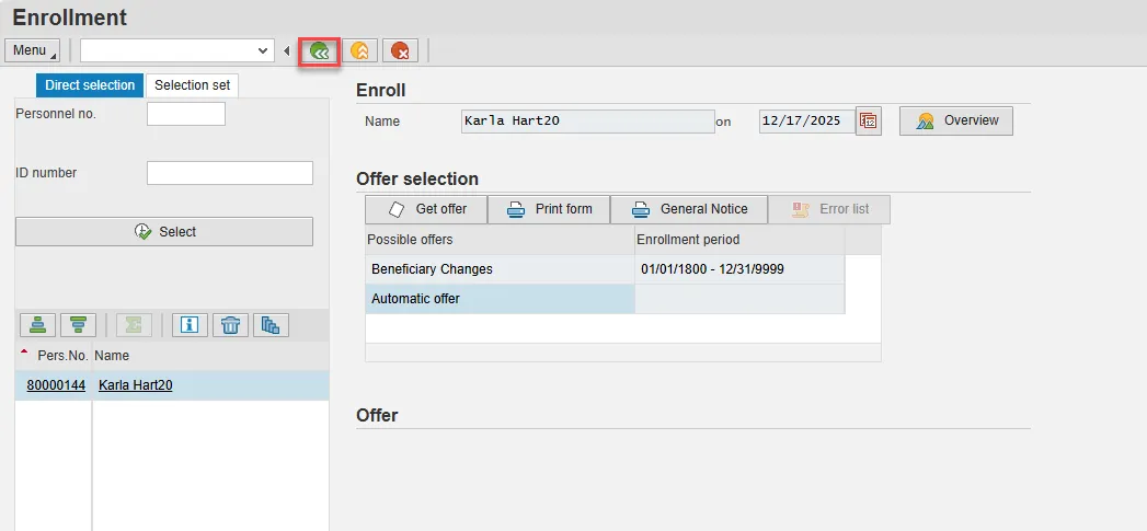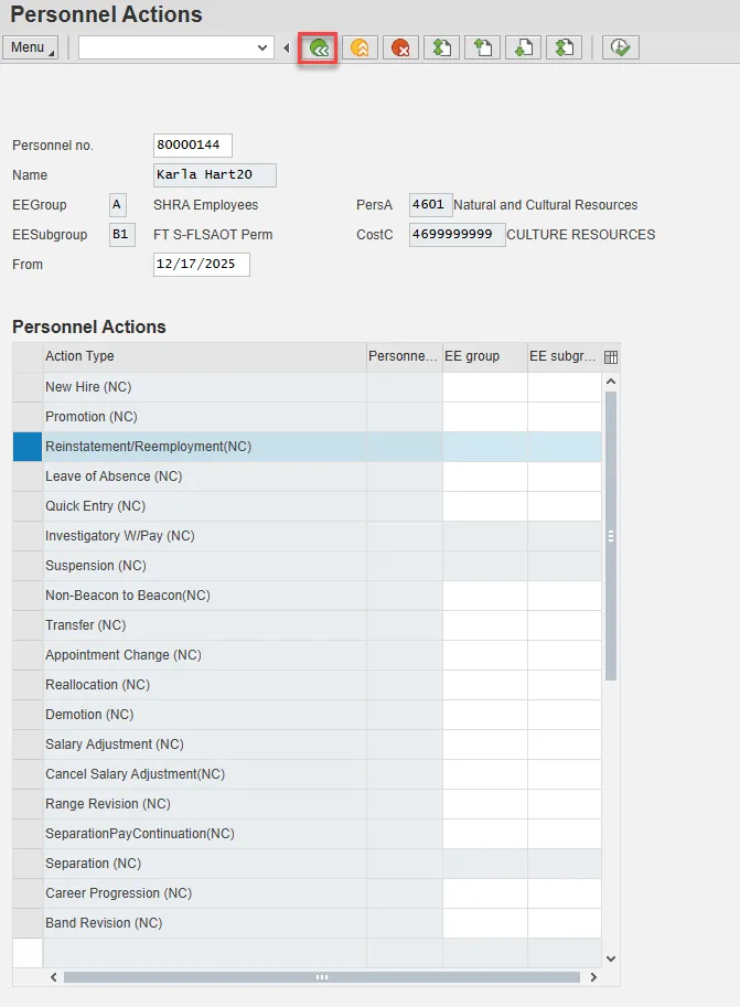 Step 49. Back at the Personnel Actions screen, select the Green Arrow Back button.