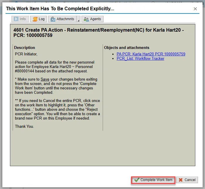 After Workflow Approvals have been received, proceed with the Complete Reinstatement/Reemployment Action process.
