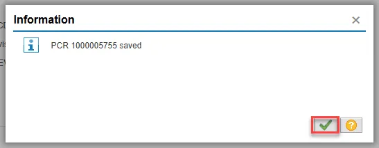 Step 8. The action request will be assigned a PCR number. Choose the green check button from the pop-up.