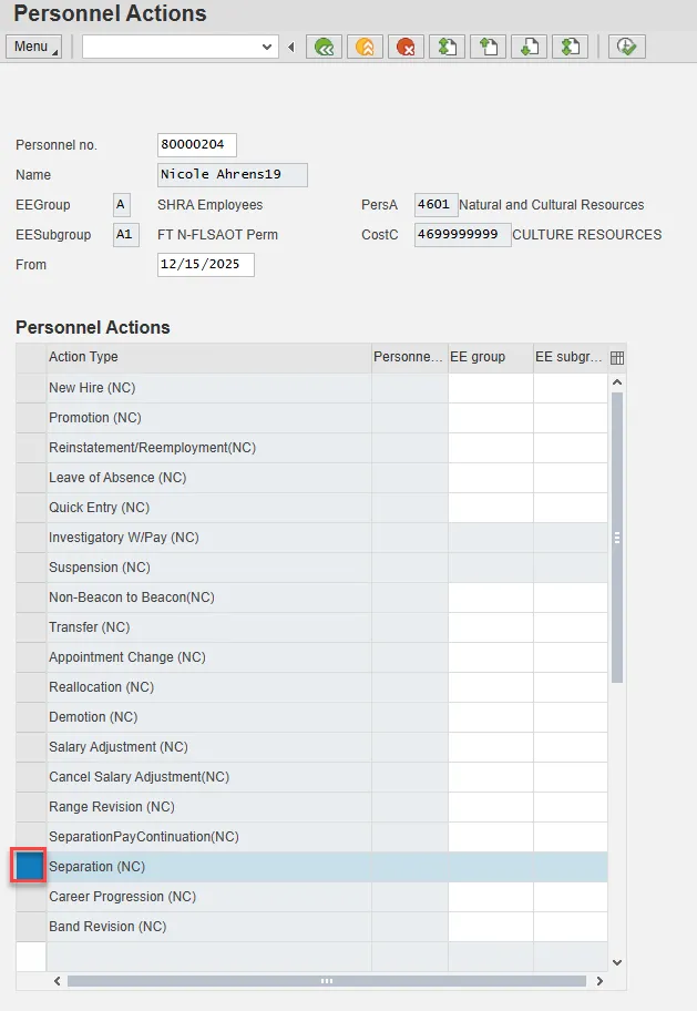 Important: Please review the employee’s action history prior to creating the Separation PCR to ensure that the Action/Reasons below have been canceled.