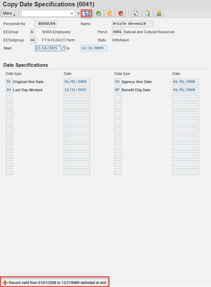 Note: The Separation Action is complete, but we recommend reviewing via PA20 all infotypes that have been processed. Check the Leave balances to ensure that they are correct.
