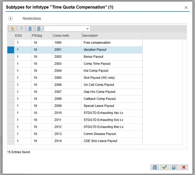 Step 18. Double-click the type of leave to compensate from the Time Quota Compensation pop-up.