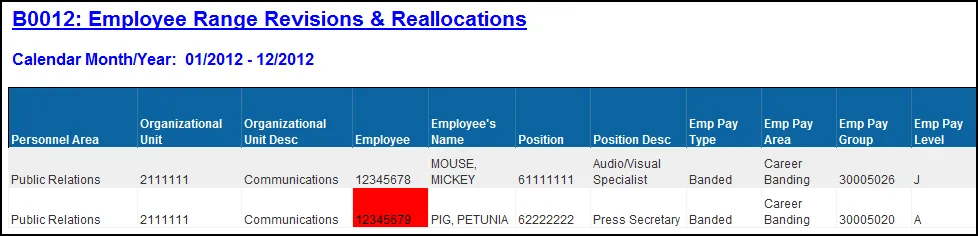 The purpose of this report description is to explain the Employee Range Revisions and Reallocations report and how to generate it in the system.