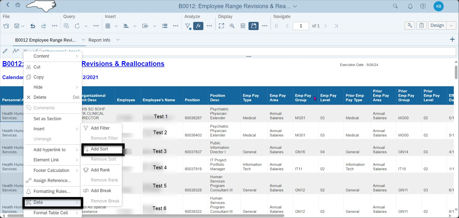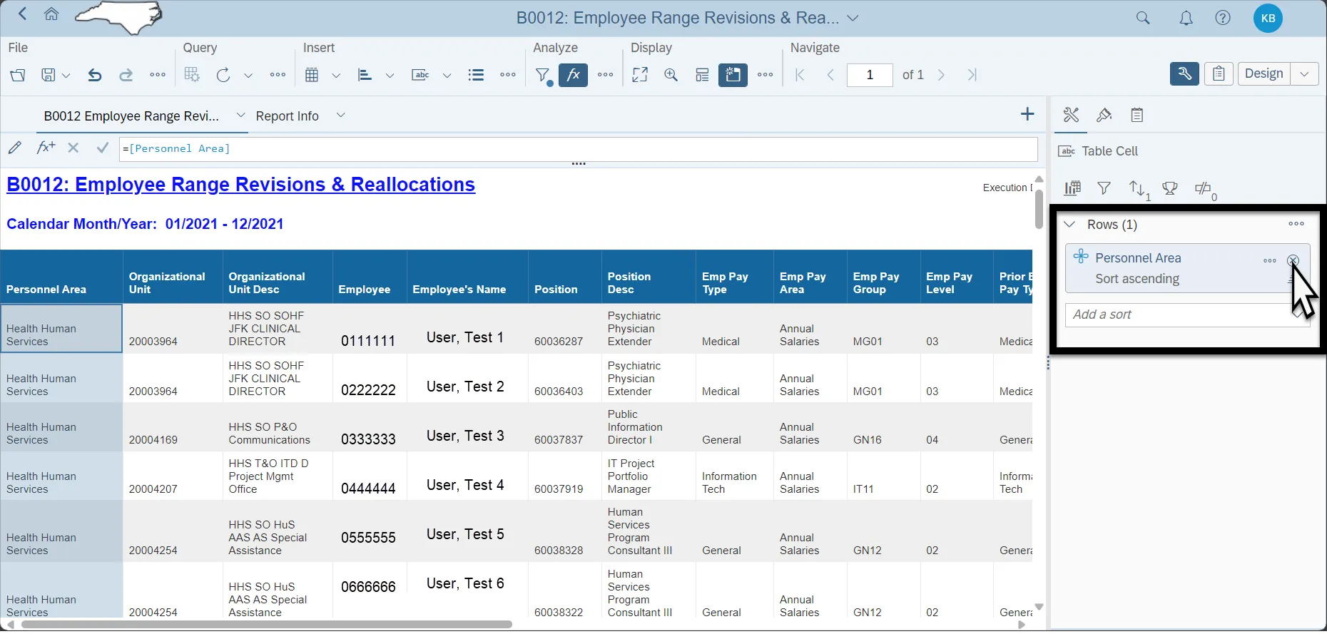 By default, data is sorted by Personnel Area. (This can be changed as needed).