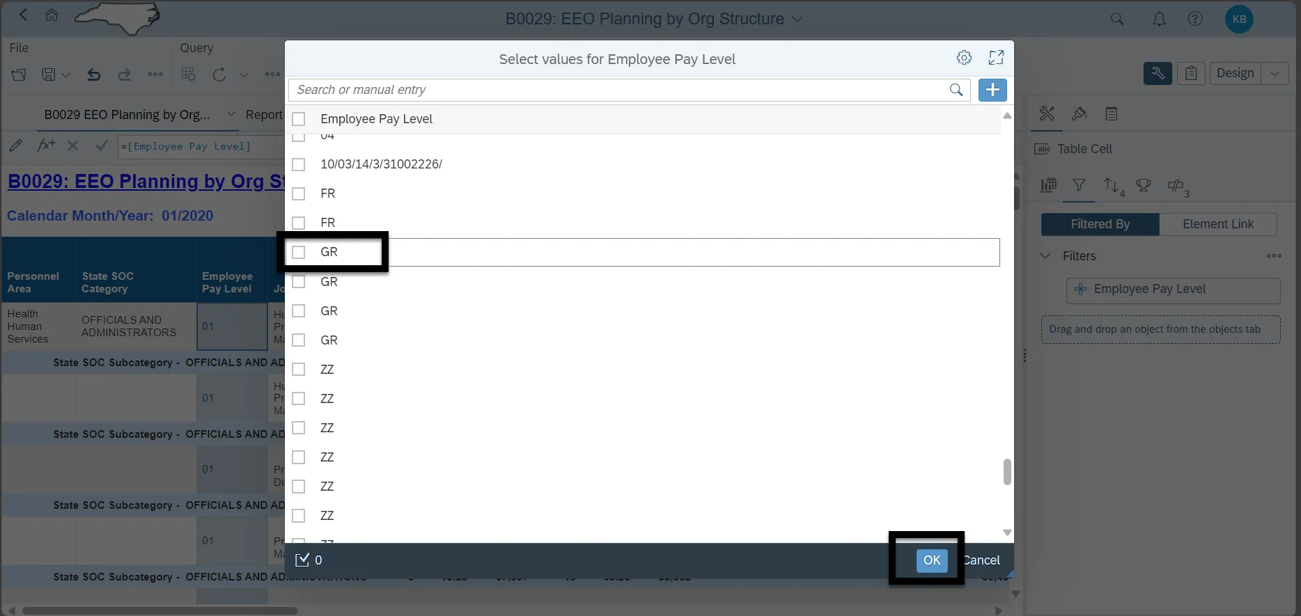 Step 7 - Select the desired pay levels and click OK