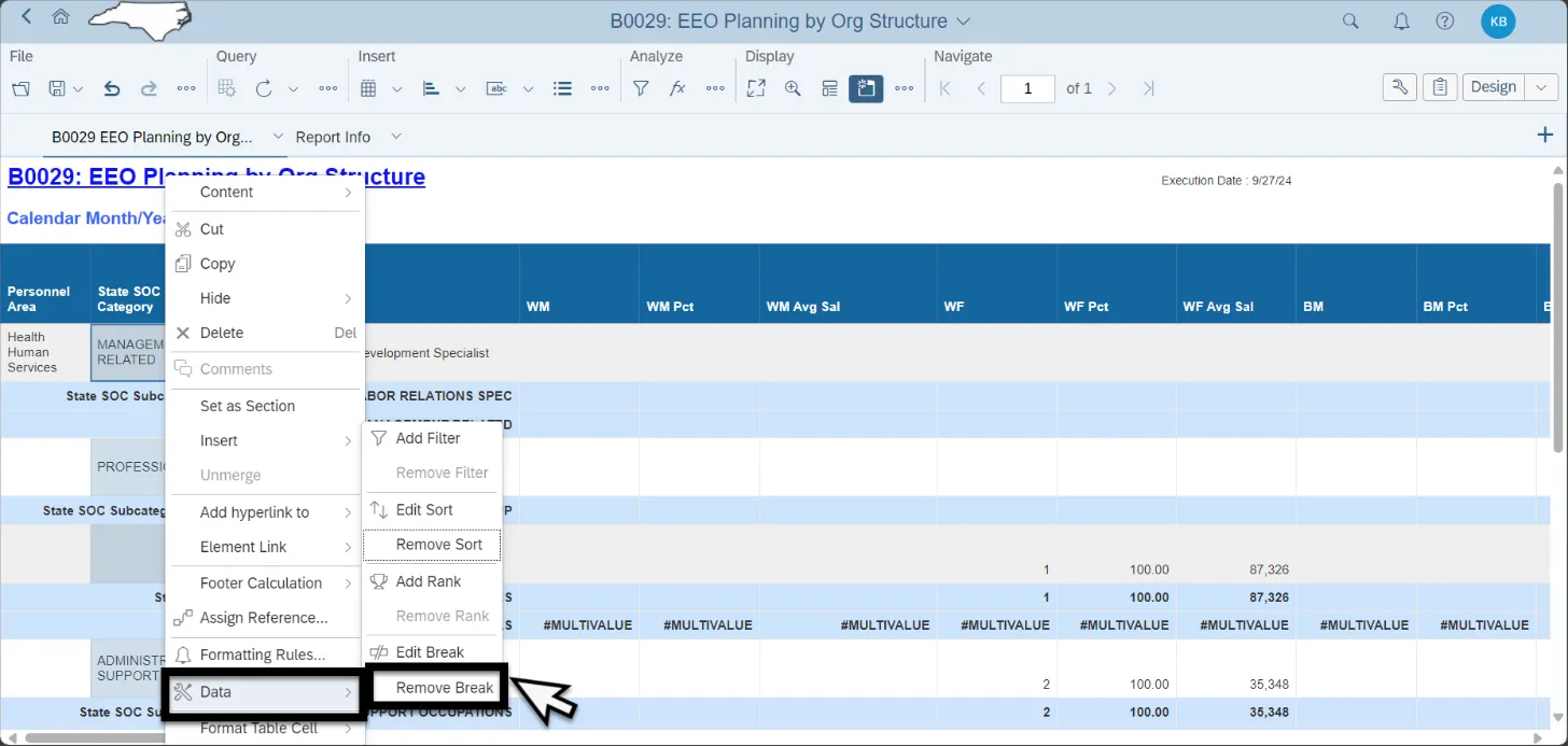 • By default, breaks are applied in the report on Personnel Area, State SOC Category, and State SOC Subcategory to avoid repeated values in the column.