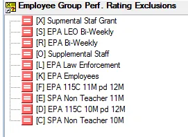Step 3 - Click the “x” to remove the employee group(s) from the exclusion list