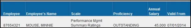 - This report can be used to obtain the list of performance ratings for the organizational unit specified to view the ratings have been entered for the employees within the organizational unit specified.
