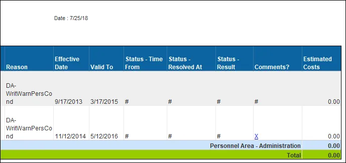 This report is used to monitor and track the status of disciplinary warnings for active employees.